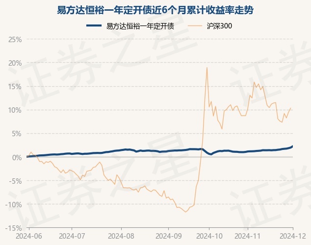 证券之星消息,12月2日,易方达恒裕一年定开债最新单位净值为1.0445元,累计净值为1.2135元,较前一交易日上涨0.27%。历史数据显示该基金近1个月上涨1.09%,近3个月上涨0.99%,近6个月上涨2.22%,近1年上涨6.95%。该基金近6个月的累计收益率走势如下图: