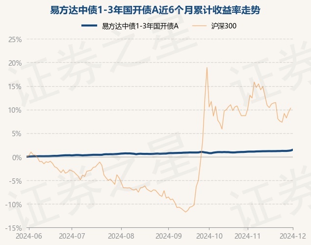 证券之星消息,12月2日,易方达中债1-3年国开债A最新单位净值为1.0124元,累计净值为1.1814元,较前一交易日上涨0.15%。历史数据显示该基金近1个月上涨0.4%,近3个月上涨0.72%,近6个月上涨1.48%,近1年上涨3.88%。该基金近6个月的累计收益率走势如下图: