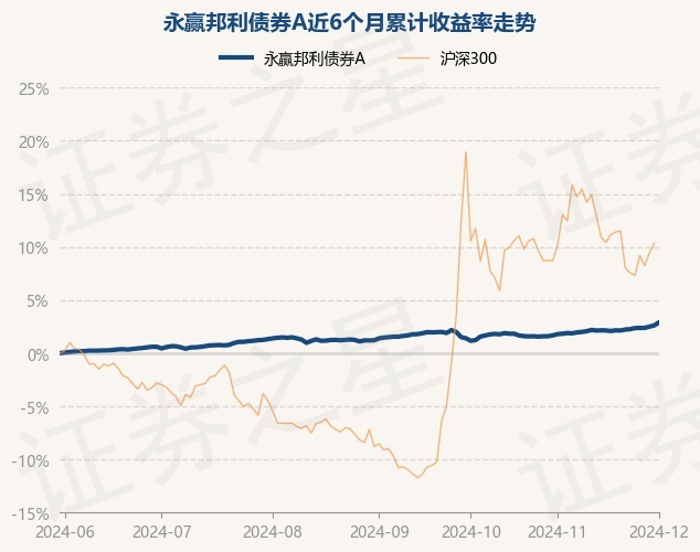 证券之星消息,12月2日,永赢邦利债券A最新单位净值为1.1297元,累计净值为1.1897元,较前一交易日上涨0.28%。历史数据显示该基金近1个月上涨1.09%,近3个月上涨1.49%,近6个月上涨2.91%,近1年上涨6.05%。该基金近6个月的累计收益率走势如下图: