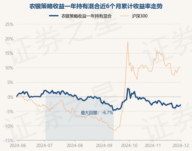 证券之星消息,12月2日,农银策略收益一年持有混合最新单位净值为0.6245元,累计净值为0.6245元,较前一交易日上涨0.37%。历史数据显示该基金近1个月下跌0.7%,近3个月下跌1.28%,近6个月下跌2.83%,近1年上涨5.81%。该基金近6个月的累计收益率走势如下图: