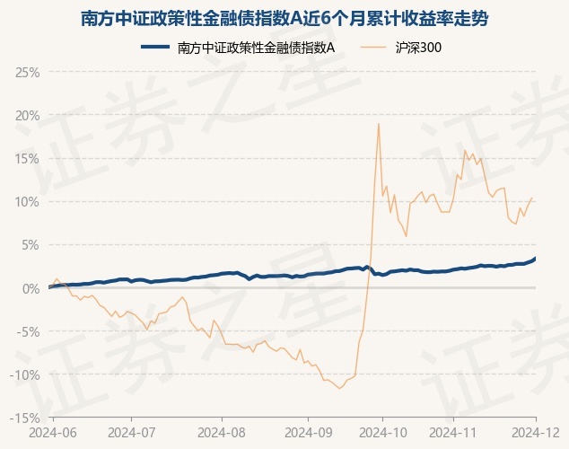证券之星消息,12月2日,南方中证政策性金融债指数A最新单位净值为1.0847元,累计净值为1.0947元,较前一交易日上涨0.31%。历史数据显示该基金近1个月上涨1.27%,近3个月上涨1.84%,近6个月上涨3.33%,近1年上涨6.69%。该基金近6个月的累计收益率走势如下图: