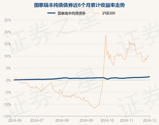 证券之星消息,12月2日,国泰瑞丰纯债债券最新单位净值为1.0095元,累计净值为1.0815元,较前一交易日上涨0.16%。历史数据显示该基金近1个月上涨0.57%,近3个月上涨0.67%,近6个月上涨1.43%,近1年上涨3.5%。该基金近6个月的累计收益率走势如下图: