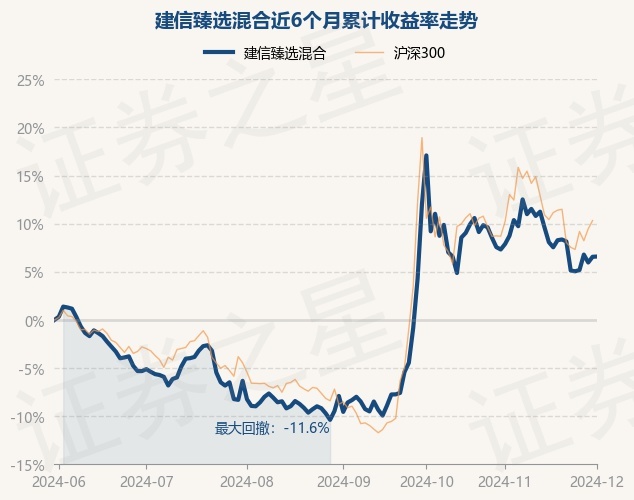 证券之星消息,12月2日,建信臻选混合最新单位净值为0.8419元,累计净值为0.8419元,较前一交易日上涨0.02%。历史数据显示该基金近1个月下跌1.21%,近3个月上涨17.85%,近6个月上涨6.58%,近1年上涨7.54%。该基金近6个月的累计收益率走势如下图:
