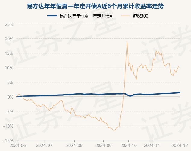 证券之星消息,12月2日,易方达年年恒夏一年定开债A最新单位净值为1.0156元,累计净值为1.2135元,较前一交易日上涨0.13%。历史数据显示该基金近1个月上涨0.68%,近3个月上涨0.65%,近6个月上涨1.49%,近1年上涨4.31%。该基金近6个月的累计收益率走势如下图: