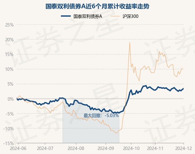 证券之星消息,12月2日,国泰双利债券A最新单位净值为1.66元,累计净值为2.08元,较前一交易日上涨0.3%。历史数据显示该基金近1个月上涨0.48%,近3个月上涨8.0%,近6个月上涨3.36%,近1年上涨7.93%。该基金近6个月的累计收益率走势如下图: