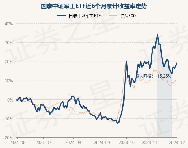 证券之星消息,12月2日,国泰中证军工ETF最新单位净值为1.0786元,累计净值为1.0786元,较前一交易日上涨1.13%。历史数据显示该基金近1个月上涨2.34%,近3个月上涨32.83%,近6个月上涨19.06%,近1年上涨10.12%。该基金近6个月的累计收益率走势如下图: