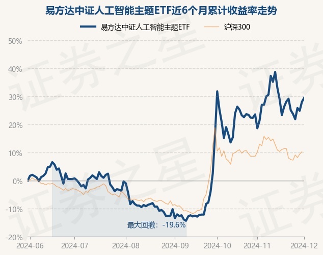 证券之星消息,12月2日,易方达中证人工智能主题ETF最新单位净值为0.9218元,累计净值为0.9218元,较前一交易日上涨1.11%。历史数据显示该基金近1个月上涨9.13%,近3个月上涨49.45%,近6个月上涨29.52%,近1年上涨19.44%。该基金近6个月的累计收益率走势如下图: