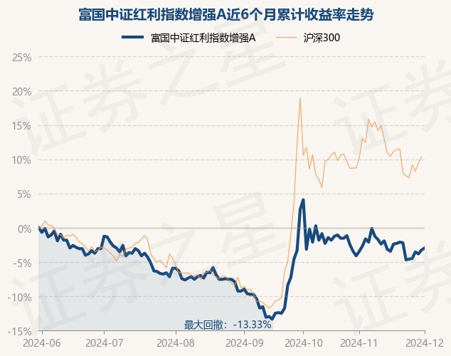 证券之星消息,12月2日,富国中证红利指数增强A最新单位净值为1.019元,累计净值为3.186元,较前一交易日上涨0.3%。历史数据显示该基金近1个月上涨0.49%,近3个月上涨6.59%,近6个月下跌2.95%,近1年上涨7.58%。该基金近6个月的累计收益率走势如下图: