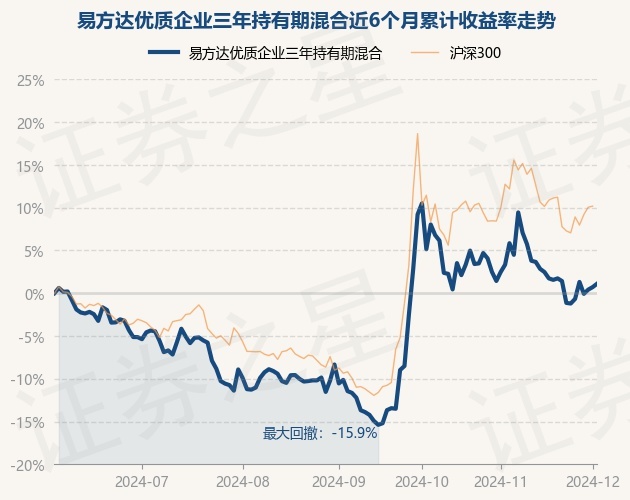 证券之星消息,12月3日,易方达优质企业三年持有期混合最新单位净值为0.8777元,累计净值为0.8777元,较前一交易日上涨0.39%。历史数据显示该基金近1个月下跌1.35%,近3个月上涨12.5%,近6个月上涨1.09%,近1年下跌1.82%。该基金近6个月的累计收益率走势如下图: