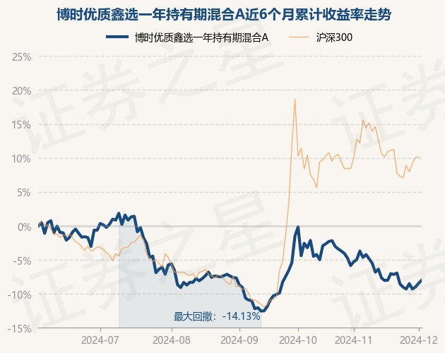 证券之星消息,12月3日,博时优质鑫选一年持有期混合A最新单位净值为0.7646元,累计净值为0.7646元,较前一交易日上涨0.49%。历史数据显示该基金近1个月下跌2.87%,近3个月上涨1.14%,近6个月下跌8.01%,近1年上涨5.45%。该基金近6个月的累计收益率走势如下图: