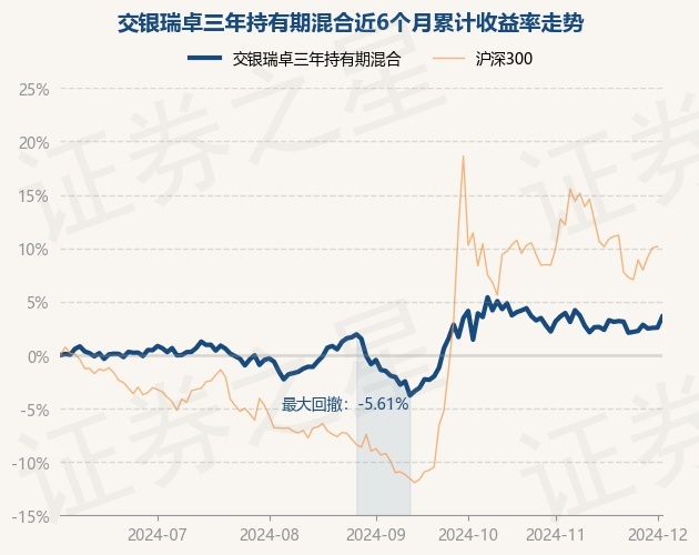 证券之星消息,12月3日,交银瑞卓三年持有期混合最新单位净值为0.9022元,累计净值为0.9022元,较前一交易日上涨1.0%。历史数据显示该基金近1个月上涨0.42%,近3个月上涨5.05%,近6个月上涨3.59%,近1年上涨7.87%。该基金近6个月的累计收益率走势如下图: