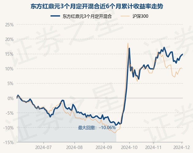 证券之星消息,12月3日,东方红鼎元3个月定开混合最新单位净值为0.9613元,累计净值为0.9613元,较前一交易日上涨0.26%。历史数据显示该基金近1个月上涨4.61%,近3个月上涨22.99%,近6个月上涨14.84%,近1年上涨14.65%。该基金近6个月的累计收益率走势如下图: