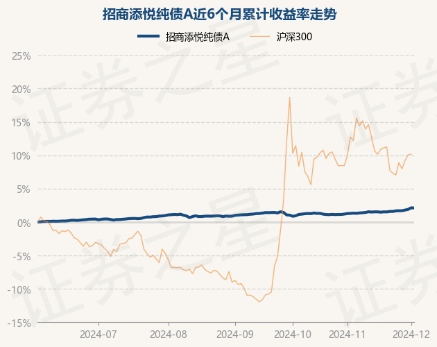 证券之星消息,12月3日,招商添悦纯债A最新单位净值为1.0416元,累计净值为1.2434元,较前一交易日下跌0.02%。历史数据显示该基金近1个月上涨0.82%,近3个月上涨1.05%,近6个月上涨2.1%,近1年上涨4.96%。该基金近6个月的累计收益率走势如下图: