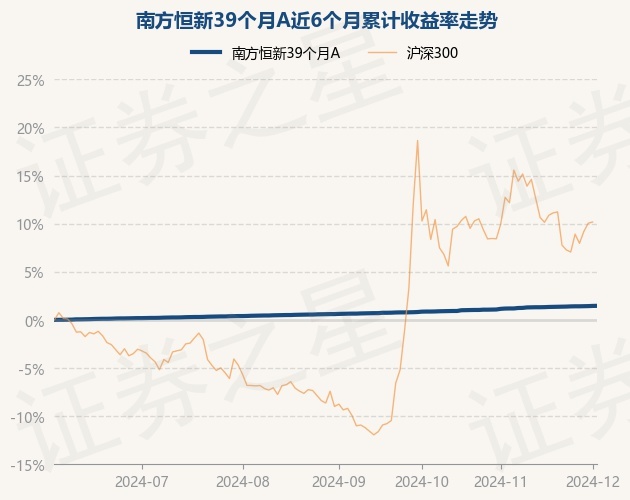 证券之星消息,12月3日,南方恒新39个月A最新单位净值为1.0409元,累计净值为1.1949元,较前一交易日上涨0.01%。历史数据显示该基金近1个月上涨0.31%,近3个月上涨0.82%,近6个月上涨1.46%,近1年上涨2.65%。该基金近6个月的累计收益率走势如下图: