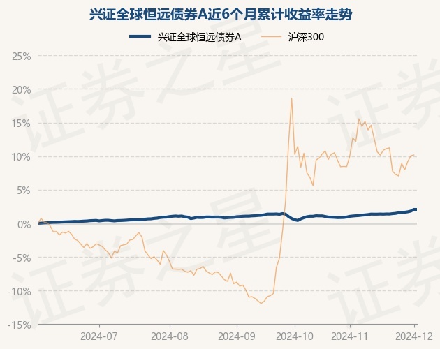 证券之星消息,12月3日,兴证全球恒远债券A最新单位净值为1.0417元,累计净值为1.0617元,较前一交易日下跌0.01%。历史数据显示该基金近1个月上涨1.01%,近3个月上涨1.04%,近6个月上涨2.05%,近1年上涨5.13%。该基金近6个月的累计收益率走势如下图: