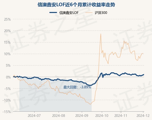 证券之星消息,12月3日,信澳鑫安LOF最新单位净值为1.012元,累计净值为1.39元,较前一交易日上涨0.2%。历史数据显示该基金近1个月上涨0.03%,近3个月上涨3.43%,近6个月上涨0.98%,近1年上涨5.38%。该基金近6个月的累计收益率走势如下图: