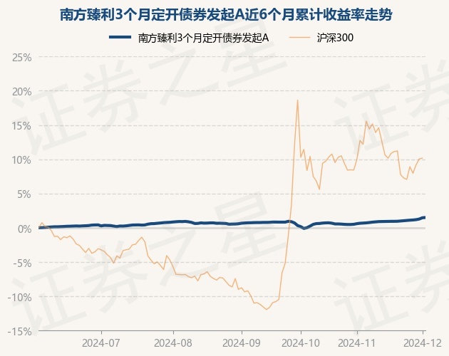 证券之星消息,12月3日,南方臻利3个月定开债券发起A最新单位净值为1.0357元,累计净值为1.1243元,较前一交易日上涨0.04%。历史数据显示该基金近1个月上涨0.9%,近3个月上涨0.8%,近6个月上涨1.5%,近1年上涨4.98%。该基金近6个月的累计收益率走势如下图: