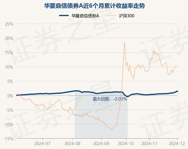 证券之星消息,12月3日,华夏鼎信债券A最新单位净值为1.0437元,累计净值为1.1591元,较前一交易日上涨0.0%。历史数据显示该基金近1个月上涨1.15%,近3个月上涨0.52%,近6个月上涨1.41%,近1年上涨5.07%。该基金近6个月的累计收益率走势如下图: