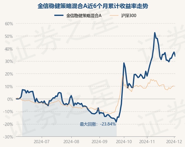 证券之星消息,12月3日,金信稳健策略混合A最新单位净值为1.5732元,累计净值为1.5732元,较前一交易日下跌2.32%。历史数据显示该基金近1个月上涨13.43%,近3个月上涨50.29%,近6个月上涨33.95%,近1年上涨3.53%。该基金近6个月的累计收益率走势如下图: