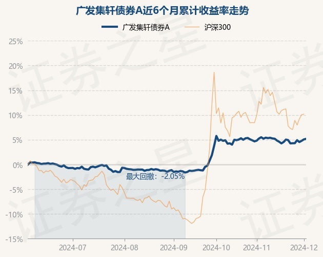 证券之星消息,12月3日,广发集轩债券A最新单位净值为1.0577元,累计净值为1.0577元,较前一交易日上涨0.11%。历史数据显示该基金近1个月上涨0.34%,近3个月上涨6.68%,近6个月上涨5.17%,近1年上涨6.73%。该基金近6个月的累计收益率走势如下图: