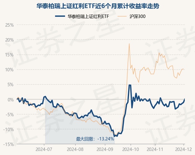 证券之星消息,12月3日,华泰柏瑞上证红利ETF最新单位净值为3.244元,累计净值为2.9717元,较前一交易日上涨1.1%。历史数据显示该基金近1个月上涨2.21%,近3个月上涨9.07%,近6个月下跌0.02%,近1年上涨13.15%。该基金近6个月的累计收益率走势如下图: