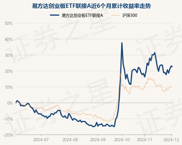 证券之星消息,12月3日,易方达创业板ETF联接A最新单位净值为2.2978元,累计净值为2.2978元,较前一交易日下跌0.42%。历史数据显示该基金近1个月上涨5.44%,近3个月上涨41.87%,近6个月上涨22.53%,近1年上涨15.92%。该基金近6个月的累计收益率走势如下图: