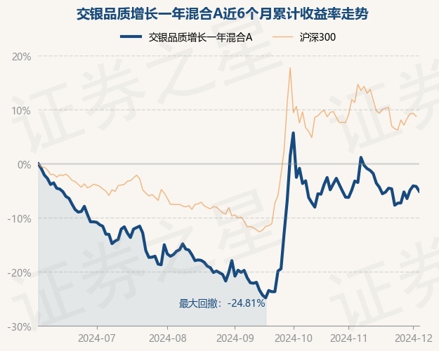 证券之星消息,12月4日,交银品质增长一年混合A最新单位净值为0.7016元,累计净值为0.7016元,较前一交易日下跌0.92%。历史数据显示该基金近1个月下跌0.2%,近3个月上涨18.77%,近6个月下跌5.09%,近1年下跌17.08%。该基金近6个月的累计收益率走势如下图: