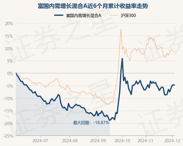 证券之星消息,12月4日,富国内需增长混合A最新单位净值为1.2449元,累计净值为1.2449元,较前一交易日上涨0.0%。历史数据显示该基金近1个月上涨0.09%,近3个月上涨12.48%,近6个月下跌5.63%,近1年下跌1.19%。该基金近6个月的累计收益率走势如下图: