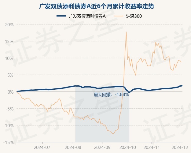 证券之星消息,12月4日,广发双债添利债券A最新单位净值为1.2283元,累计净值为1.6512元,较前一交易日上涨0.11%。历史数据显示该基金近1个月上涨1.29%,近3个月上涨0.57%,近6个月上涨1.79%,近1年上涨6.01%。该基金近6个月的累计收益率走势如下图: