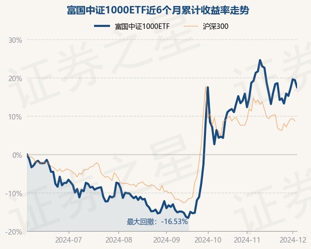 证券之星消息,12月4日,富国中证1000ETF最新单位净值为2.5193元,累计净值为0.887元,较前一交易日下跌1.56%。历史数据显示该基金近1个月上涨2.51%,近3个月上涨36.13%,近6个月上涨17.54%,近1年上涨2.59%。该基金近6个月的累计收益率走势如下图: