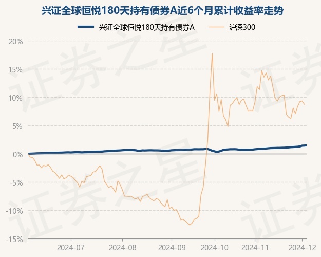 证券之星消息,12月4日,兴证全球恒悦180天持有债券A最新单位净值为1.1267元,累计净值为1.1267元,较前一交易日上涨0.05%。历史数据显示该基金近1个月上涨0.67%,近3个月上涨0.83%,近6个月上涨1.51%,近1年上涨4.39%。该基金近6个月的累计收益率走势如下图: