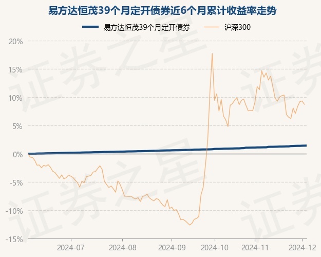 证券之星消息,12月4日,易方达恒茂39个月定开债券最新单位净值为1.0183元,累计净值为1.1363元,较前一交易日上涨0.01%。历史数据显示该基金近1个月上涨0.32%,近3个月上涨0.8%,近6个月上涨1.45%,近1年上涨2.67%。该基金近6个月的累计收益率走势如下图: