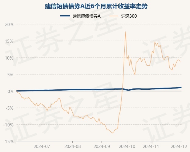 证券之星消息,12月4日,建信短债债券A最新单位净值为1.1392元,累计净值为1.1502元,较前一交易日上涨0.04%。历史数据显示该基金近1个月上涨0.42%,近3个月上涨0.56%,近6个月上涨1.06%,近1年上涨2.72%。该基金近6个月的累计收益率走势如下图: