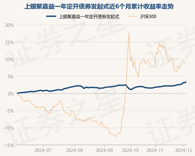 证券之星消息,12月4日,上银聚嘉益一年定开债券发起式最新单位净值为1.044元,累计净值为1.0818元,较前一交易日上涨0.23%。历史数据显示该基金近1个月上涨1.52%,近3个月上涨1.51%,近6个月上涨3.37%,近1年上涨6.53%。该基金近6个月的累计收益率走势如下图: