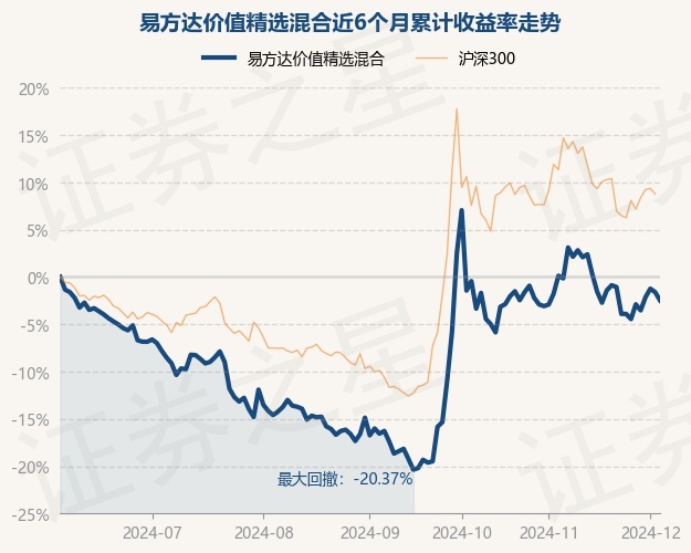 证券之星消息,12月4日,易方达价值精选混合最新单位净值为1.1343元,累计净值为3.8433元,较前一交易日下跌0.89%。历史数据显示该基金近1个月下跌0.72%,近3个月上涨16.88%,近6个月下跌2.48%,近1年上涨3.96%。该基金近6个月的累计收益率走势如下图: