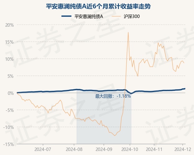 证券之星消息,12月4日,平安惠澜纯债A最新单位净值为1.1173元,累计净值为1.2023元,较前一交易日上涨0.1%。历史数据显示该基金近1个月上涨0.77%,近3个月上涨0.58%,近6个月上涨1.22%,近1年上涨4.36%。该基金近6个月的累计收益率走势如下图: