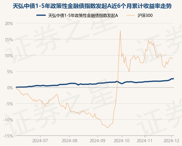 证券之星消息,12月4日,天弘中债1-5年政策性金融债指数发起A最新单位净值为1.05元,累计净值为1.1306元,较前一交易日上涨0.1%。历史数据显示该基金近1个月上涨0.96%,近3个月上涨1.41%,近6个月上涨2.75%,近1年上涨6.07%。该基金近6个月的累计收益率走势如下图: