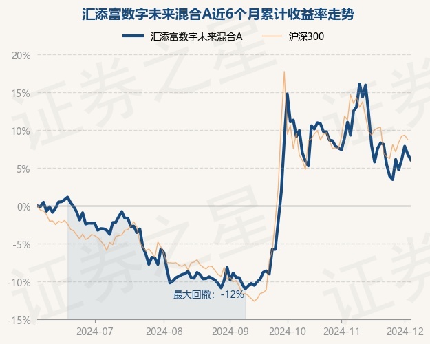 证券之星消息,12月4日,汇添富数字未来混合A最新单位净值为0.612元,累计净值为0.612元,较前一交易日下跌0.7%。历史数据显示该基金近1个月下跌2.63%,近3个月上涨17.17%,近6个月上涨6.1%,近1年上涨6.4%。该基金近6个月的累计收益率走势如下图: