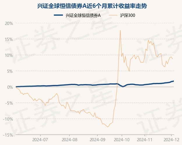 证券之星消息,12月4日,兴证全球恒信债券A最新单位净值为1.0868元,累计净值为1.0868元,较前一交易日上涨0.09%。历史数据显示该基金近1个月上涨1.07%,近3个月上涨1.08%,近6个月上涨1.79%,近1年上涨4.48%。该基金近6个月的累计收益率走势如下图: