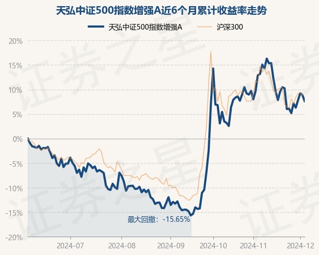 证券之星消息,12月4日,天弘中证500指数增强A最新单位净值为1.1695元,累计净值为1.1695元,较前一交易日下跌1.11%。历史数据显示该基金近1个月下跌1.85%,近3个月上涨24.06%,近6个月上涨7.63%,近1年上涨8.82%。该基金近6个月的累计收益率走势如下图: