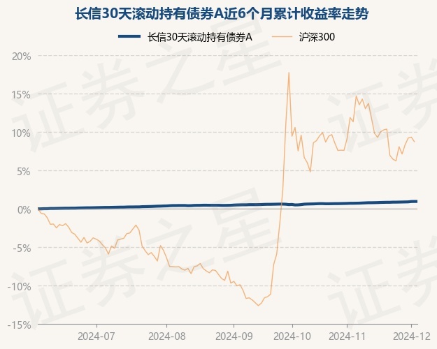 证券之星消息,12月4日,长信30天滚动持有债券A最新单位净值为1.1159元,累计净值为1.1159元,较前一交易日上涨0.0%。历史数据显示该基金近1个月上涨0.24%,近3个月上涨0.45%,近6个月上涨0.98%,近1年上涨2.53%。该基金近6个月的累计收益率走势如下图: