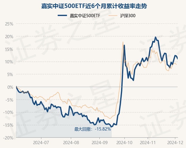 证券之星消息,12月4日,嘉实中证500ETF最新单位净值为2.3481元,累计净值为1.9403元,较前一交易日下跌0.89%。历史数据显示该基金近1个月下跌0.92%,近3个月上涨28.18%,近6个月上涨11.03%,近1年上涨7.14%。该基金近6个月的累计收益率走势如下图: