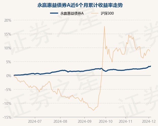 证券之星消息,12月4日,永赢惠益债券A最新单位净值为1.1071元,累计净值为1.2691元,较前一交易日上涨0.17%。历史数据显示该基金近1个月上涨1.28%,近3个月上涨1.54%,近6个月上涨3.36%,近1年上涨7.2%。该基金近6个月的累计收益率走势如下图: