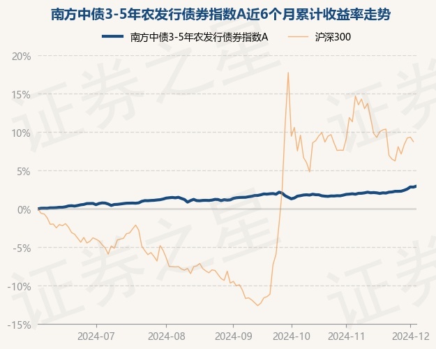 证券之星消息,12月4日,南方中债3-5年农发行债券指数A最新单位净值为1.0983元,累计净值为1.2513元,较前一交易日上涨0.12%。历史数据显示该基金近1个月上涨1.02%,近3个月上涨1.45%,近6个月上涨2.96%,近1年上涨6.46%。该基金近6个月的累计收益率走势如下图: