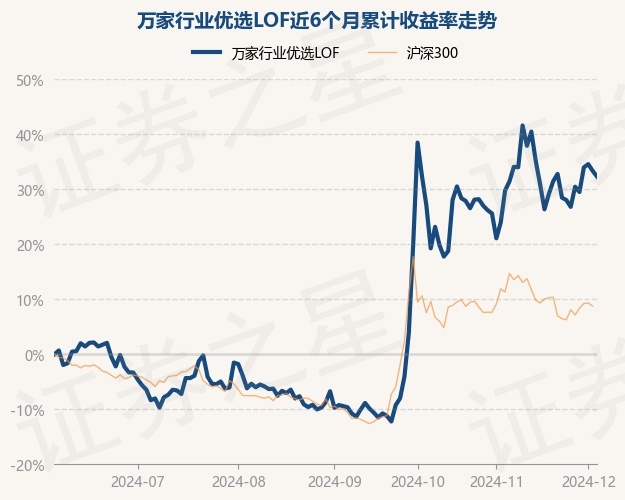 证券之星消息,12月4日,万家行业优选LOF最新单位净值为0.9716元,累计净值为4.3201元,较前一交易日下跌0.79%。历史数据显示该基金近1个月上涨6.75%,近3个月上涨46.08%,近6个月上涨32.32%,近1年下跌2.43%。该基金近6个月的累计收益率走势如下图: