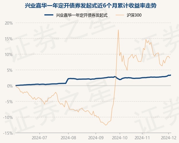 证券之星消息,12月4日,兴业嘉华一年定开债券发起式最新单位净值为1.0417元,累计净值为1.1887元,较前一交易日上涨0.1%。历史数据显示该基金近1个月上涨0.81%,近3个月上涨1.04%,近6个月上涨3.35%,近1年上涨6.85%。该基金近6个月的累计收益率走势如下图: