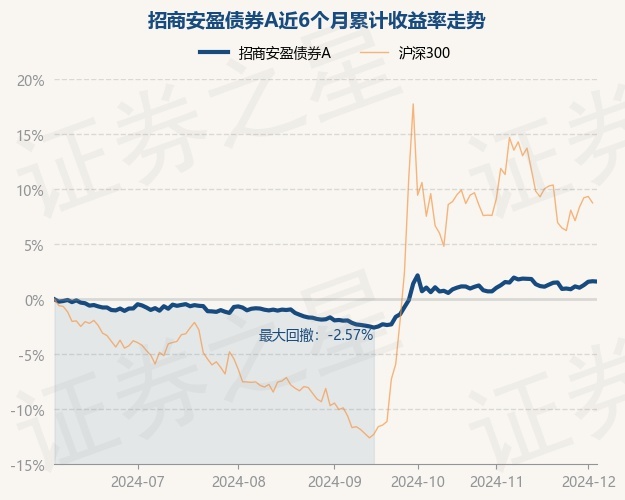 证券之星消息,12月4日,招商安盈债券A最新单位净值为1.1052元,累计净值为1.8687元,较前一交易日下跌0.03%。历史数据显示该基金近1个月上涨0.34%,近3个月上涨3.63%,近6个月上涨1.62%,近1年上涨7.44%。该基金近6个月的累计收益率走势如下图: