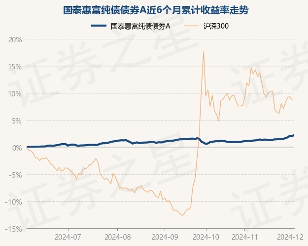 证券之星消息,12月4日,国泰惠富纯债债券A最新单位净值为1.0515元,累计净值为1.1601元,较前一交易日上涨0.15%。历史数据显示该基金近1个月上涨1.09%,近3个月上涨1.04%,近6个月上涨2.24%,近1年上涨5.72%。该基金近6个月的累计收益率走势如下图: