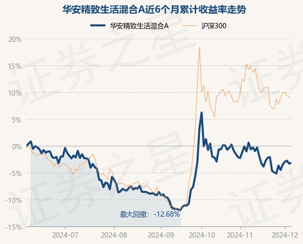 证券之星消息,12月5日,华安精致生活混合A最新单位净值为1.241元,累计净值为1.241元,较前一交易日上涨0.15%。历史数据显示该基金近1个月下跌3.09%,近3个月上涨7.16%,近6个月下跌3.14%,近1年上涨11.89%。该基金近6个月的累计收益率走势如下图: