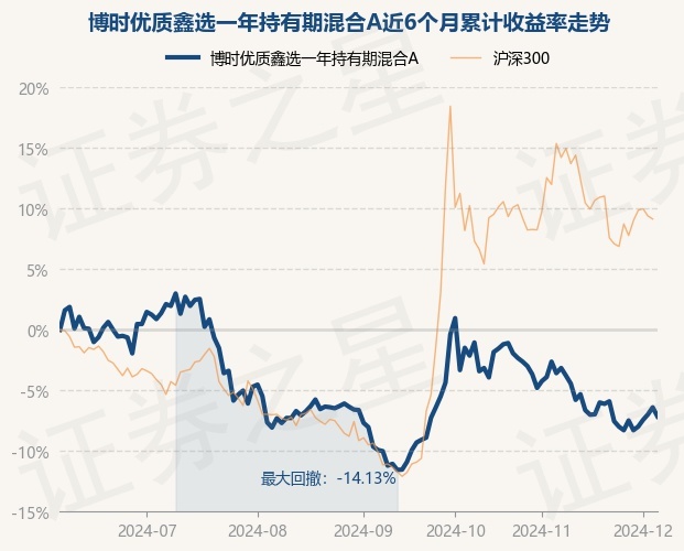 证券之星消息,12月5日,博时优质鑫选一年持有期混合A最新单位净值为0.7632元,累计净值为0.7632元,较前一交易日下跌0.81%。历史数据显示该基金近1个月下跌4.65%,近3个月上涨3.07%,近6个月下跌7.15%,近1年上涨6.91%。该基金近6个月的累计收益率走势如下图: